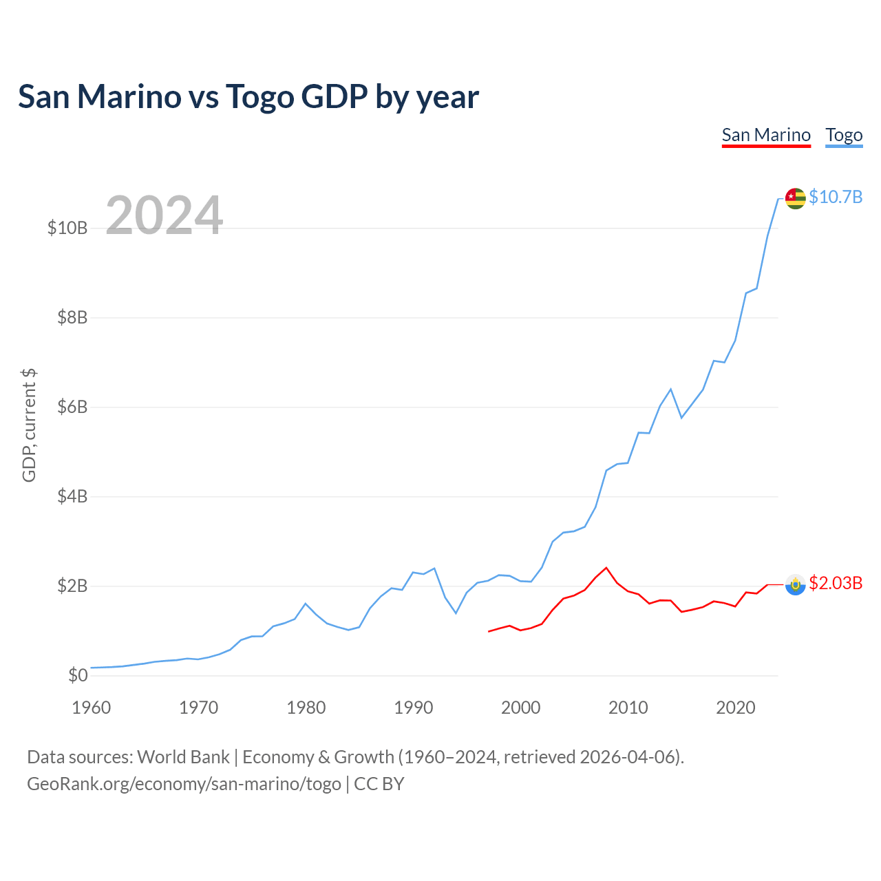 San Marino vs Togo GDP by year