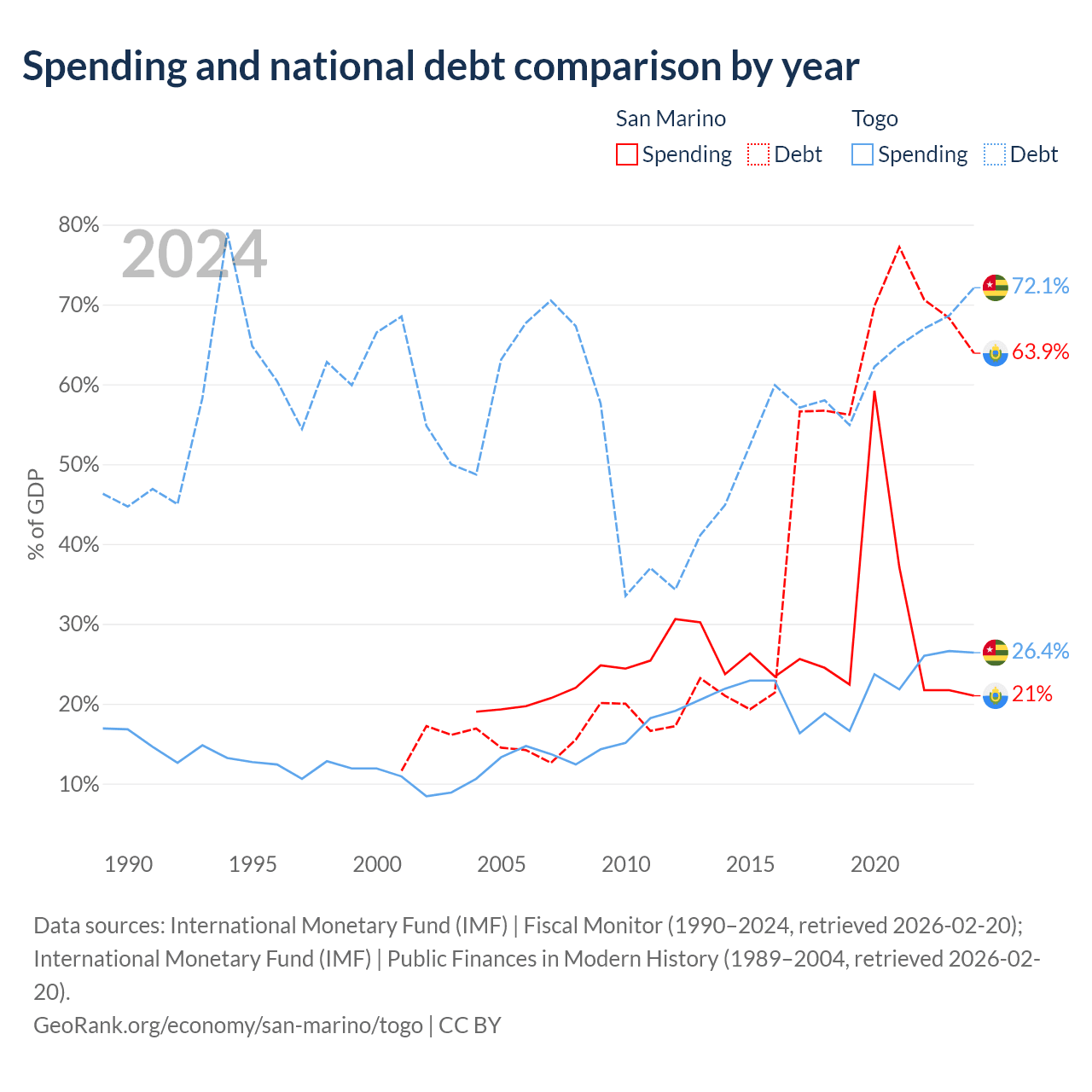 - International Monetary Fund (IMF) | Fiscal Monitor (1990–2024, retrieved 2026-02-20)