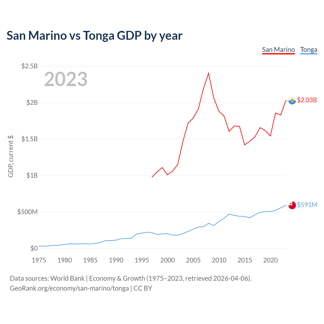 San Marino vs Tonga GDP by year