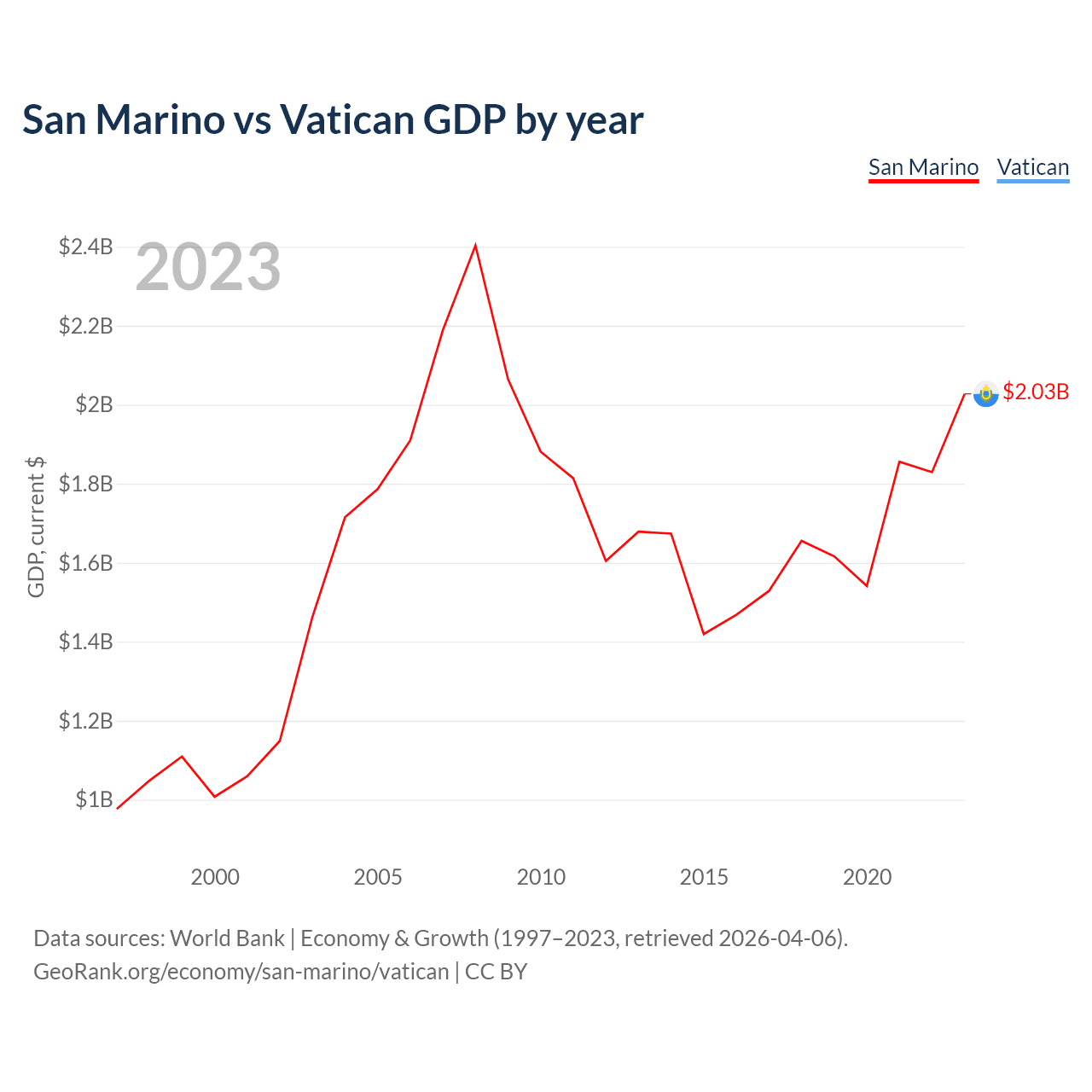San Marino vs Vatican GDP by year