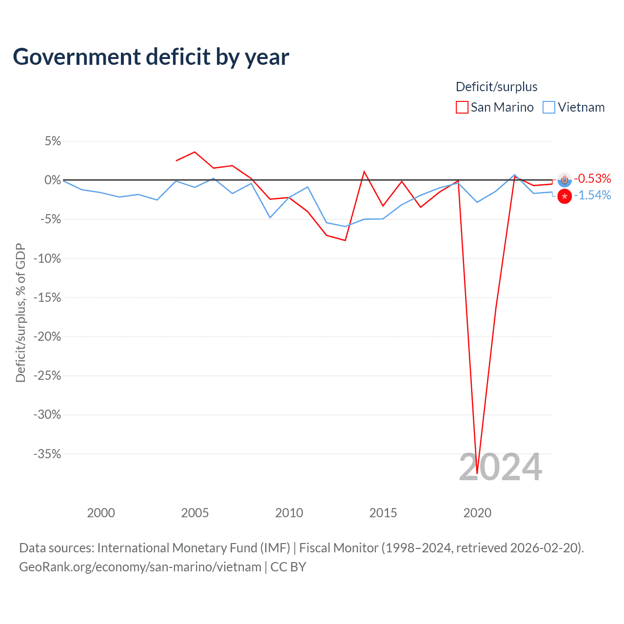 - International Monetary Fund (IMF) | Fiscal Monitor (1998–2024, retrieved 2026-02-20)