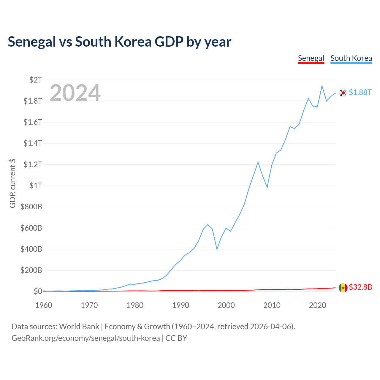 Senegal vs South Korea GDP by year