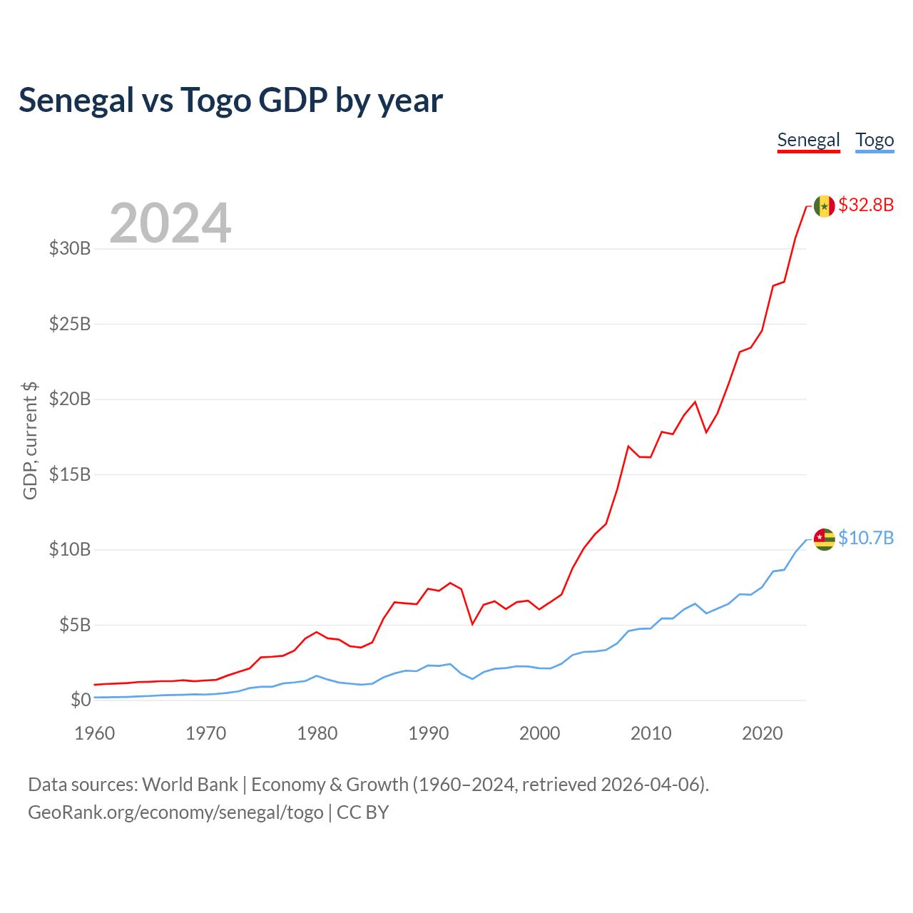 Senegal vs Togo GDP by year