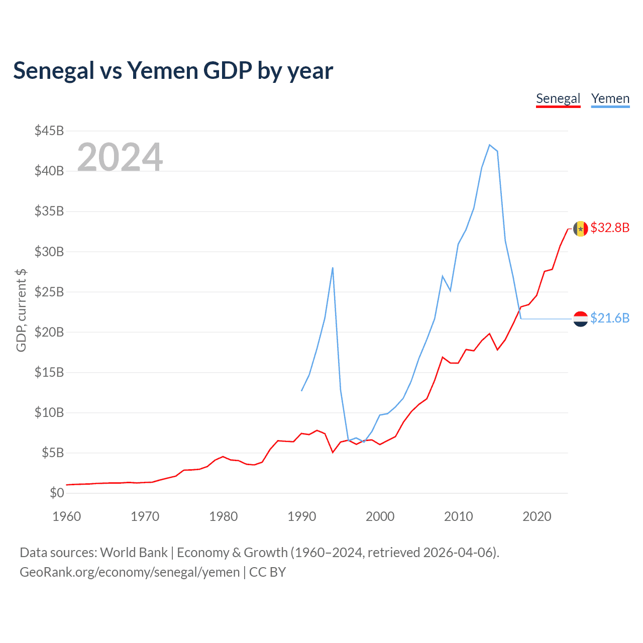 Senegal vs Yemen GDP by year