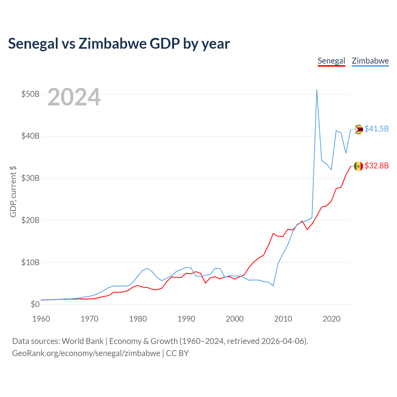 Senegal vs Zimbabwe GDP by year