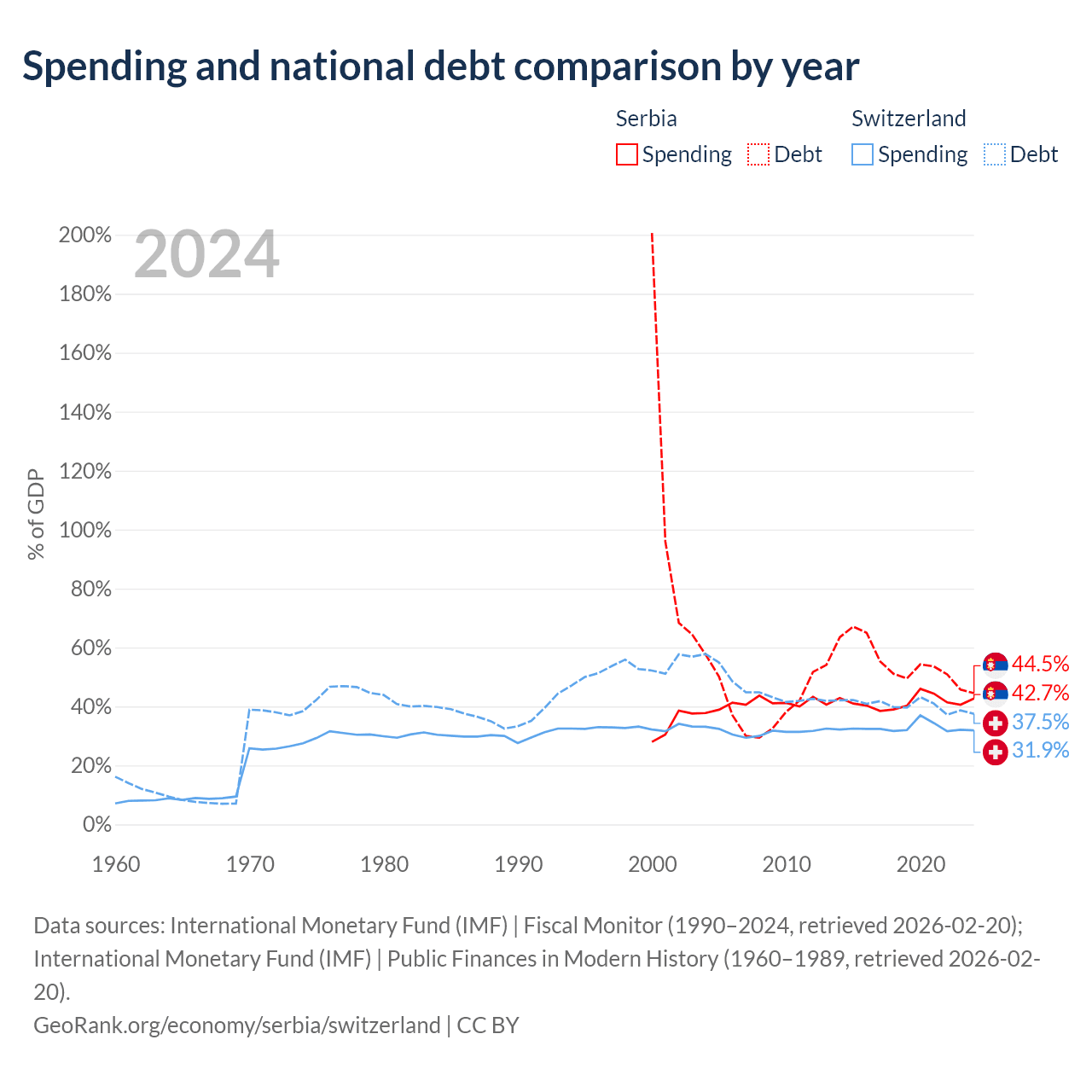 Serbia has $40.1B in government debt (44.5% of GDP), compared to $351B (37.5% of GDP) in Switzerland.