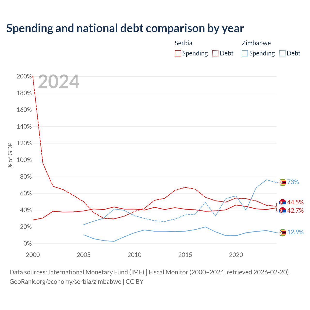 Serbia has $40.1B in government debt (44.5% of GDP), compared to $30.3B (73% of GDP) in Zimbabwe.