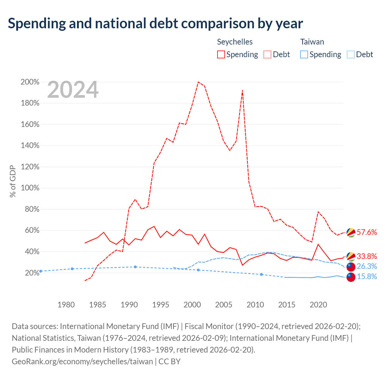 The Seychelles has $1.25B in government debt (57.6% of GDP), compared to $211B (26.3% of GDP) in Taiwan.