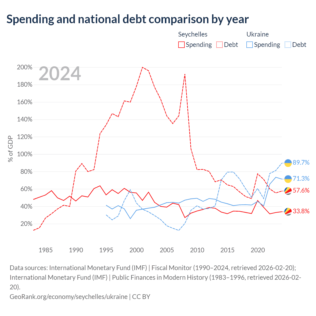 The Seychelles has $1.25B in government debt (57.6% of GDP), compared to $171B (89.7% of GDP) in Ukraine.