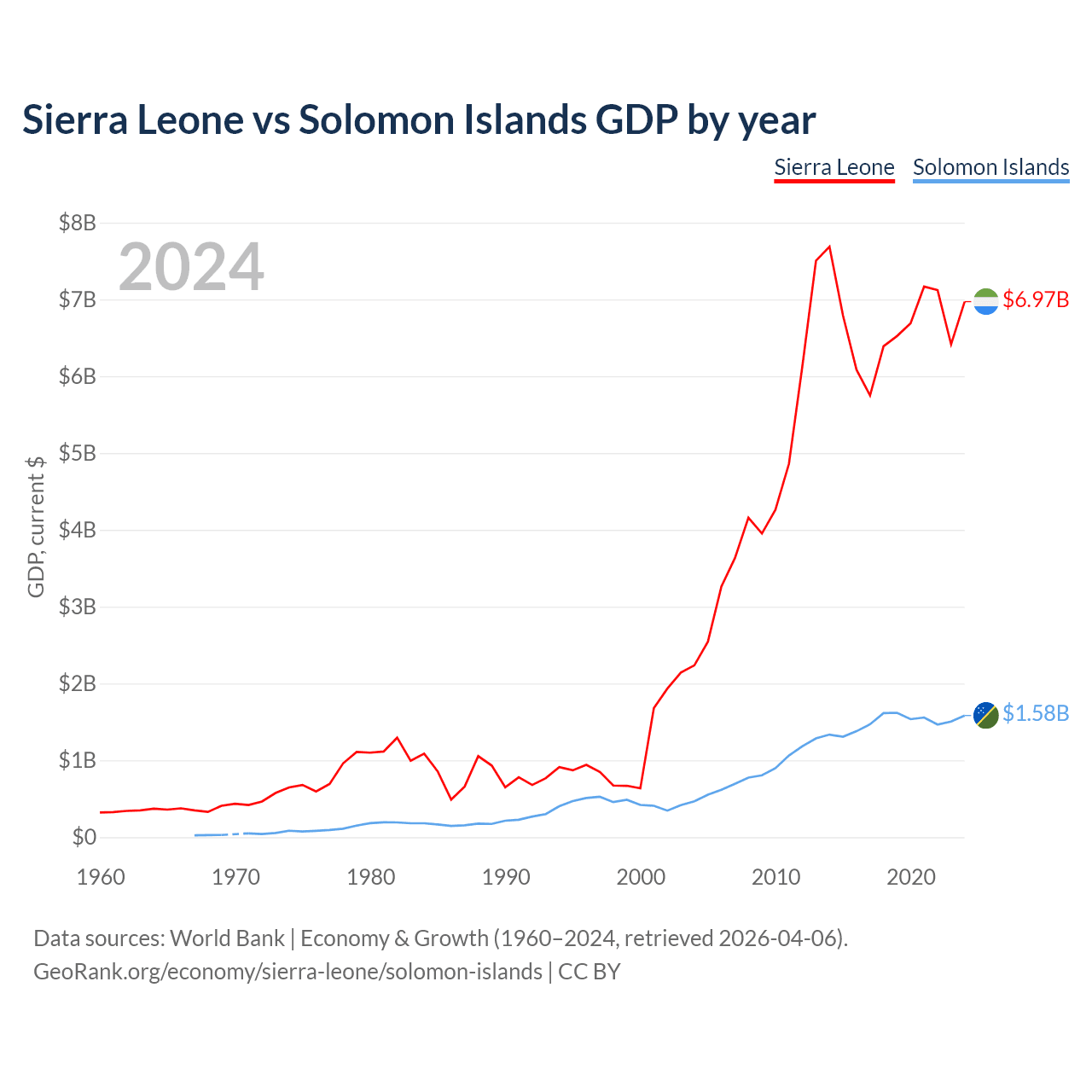 Sierra Leone vs Solomon Islands GDP by year