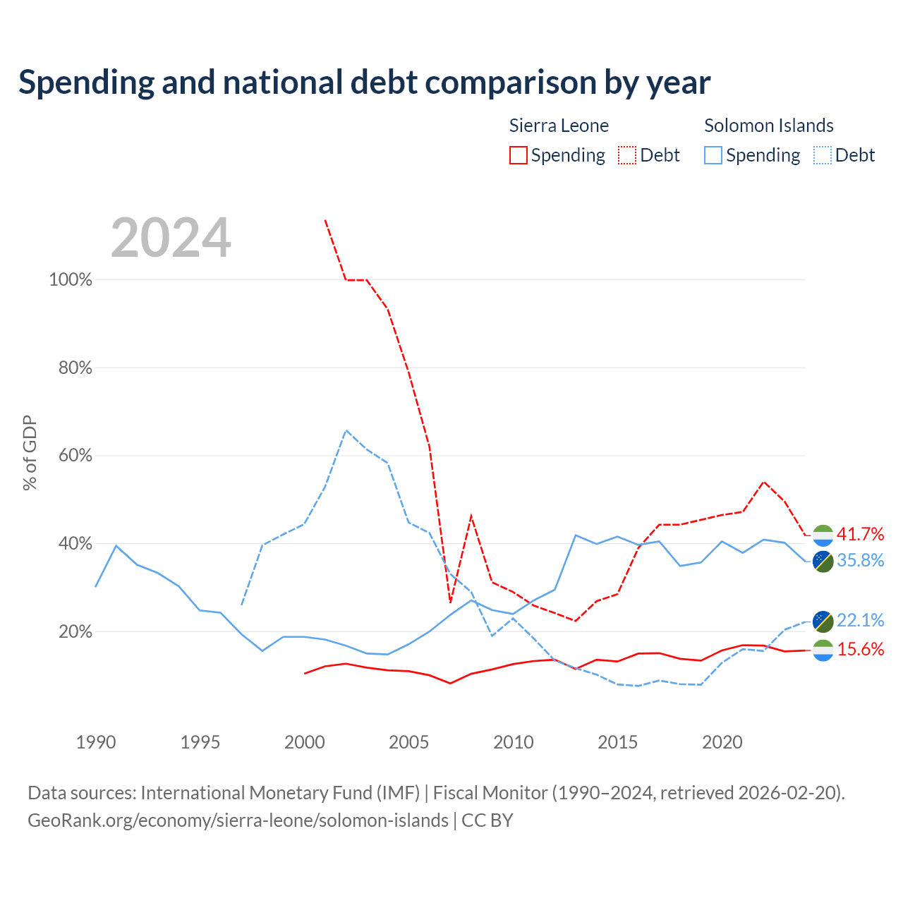 Sierra Leone has $2.91B in government debt (41.7% of GDP), compared to $350M (22.1% of GDP) in the Solomon Islands.