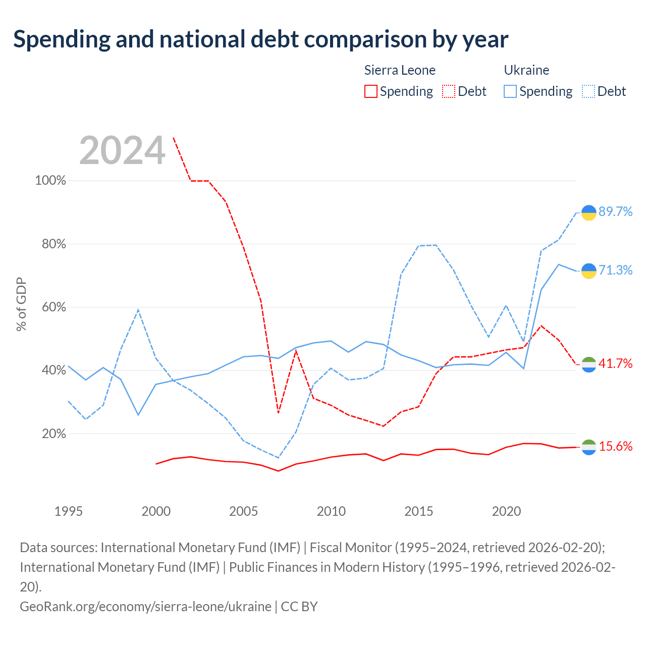 Sierra Leone has $2.91B in government debt (41.7% of GDP), compared to $171B (89.7% of GDP) in Ukraine.