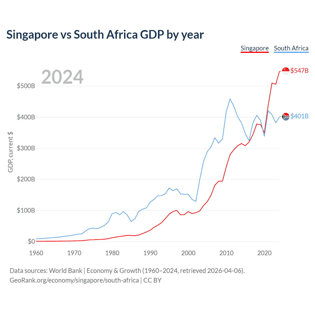 Singapore vs South Africa GDP by year