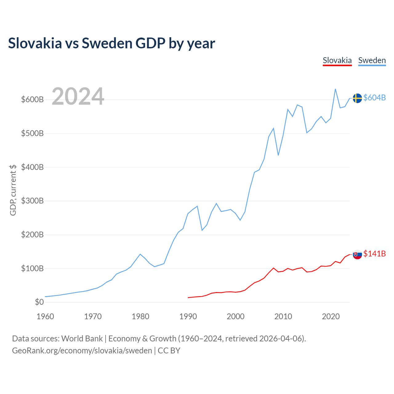 Slovakia vs Sweden GDP by year