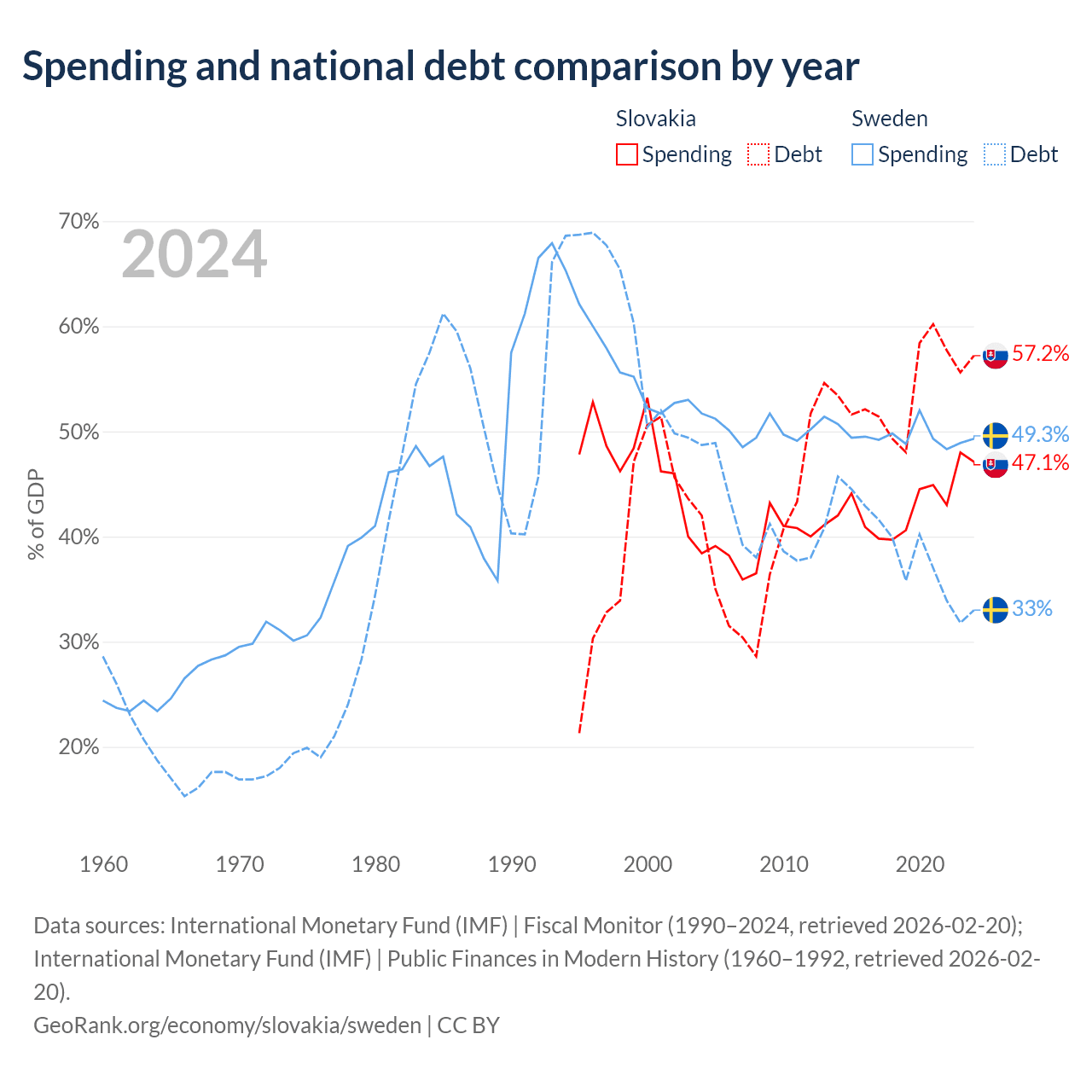 Slovakia has $80.7B in government debt (57.2% of GDP), compared to $199B (33% of GDP) in Sweden.