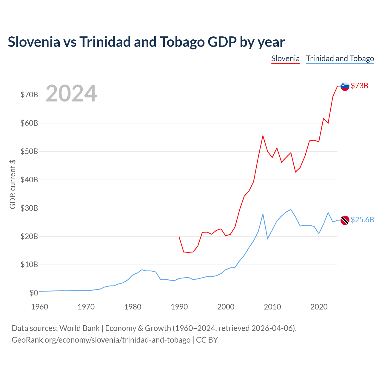 Slovenia vs Trinidad and Tobago GDP by year