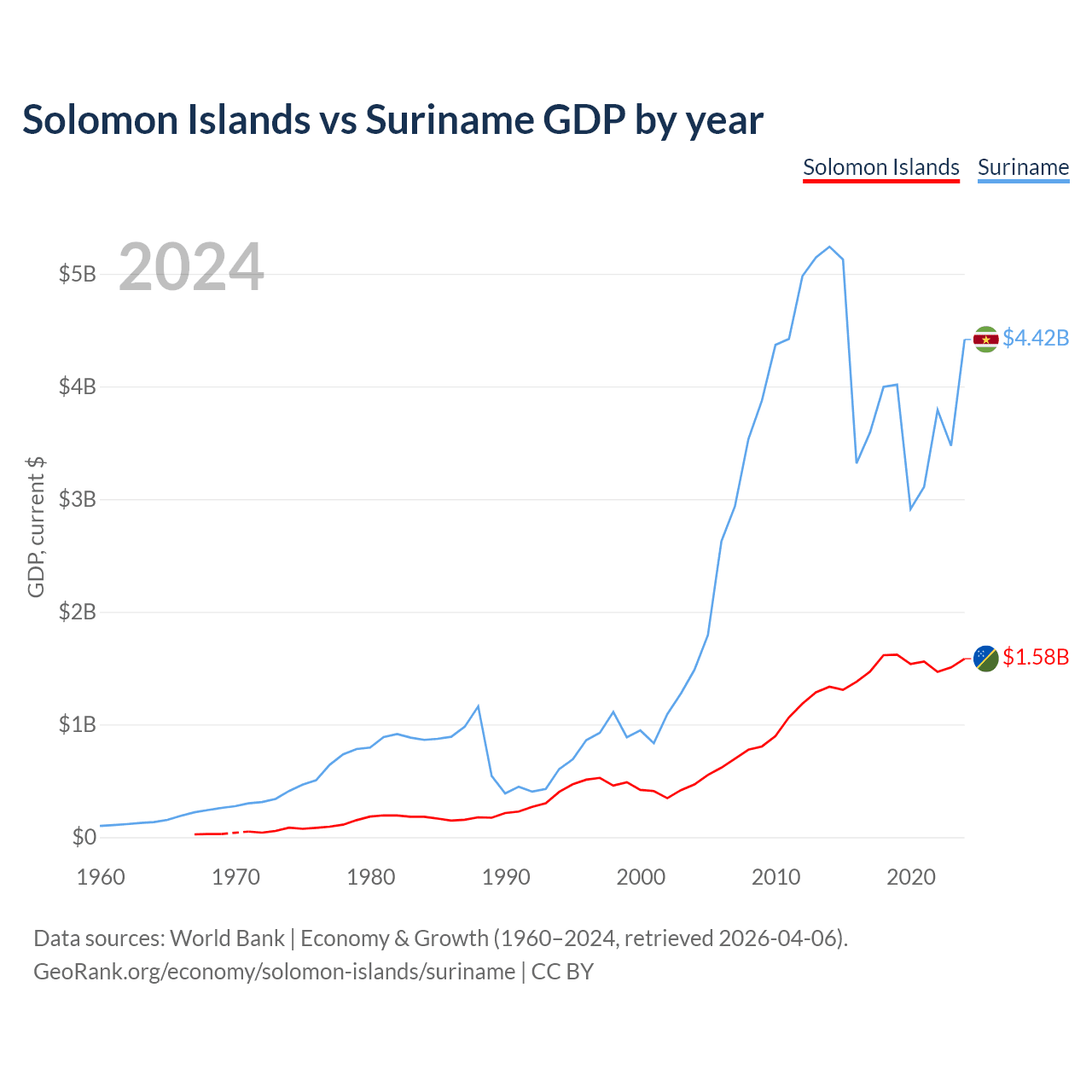 Solomon Islands vs Suriname GDP by year