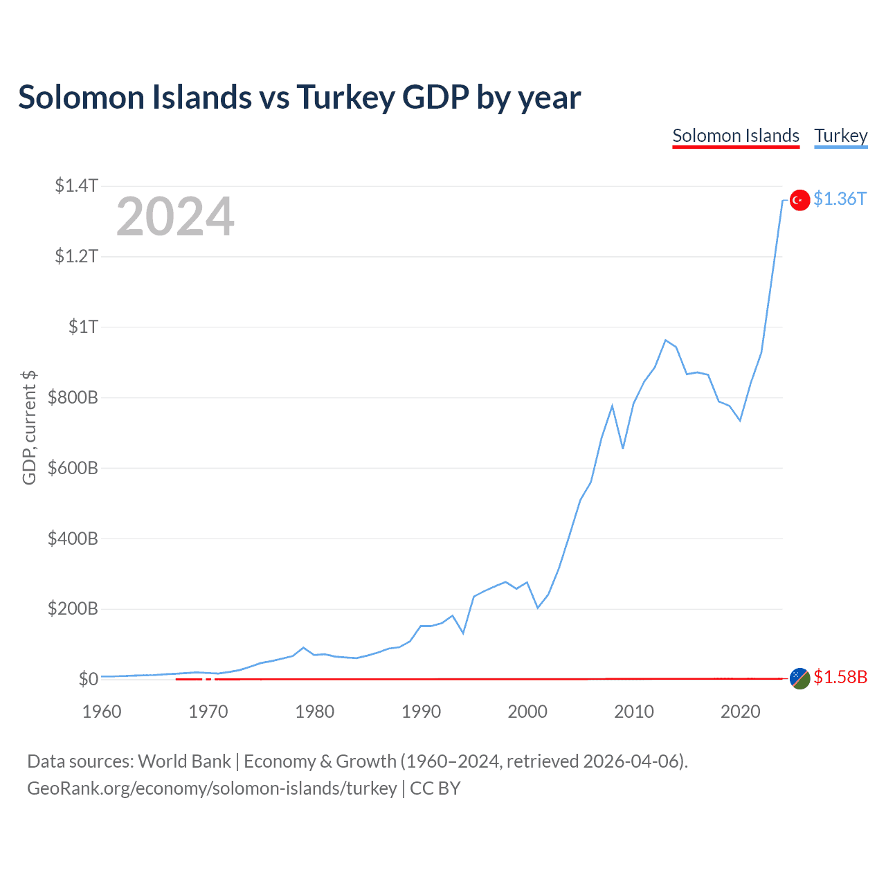 Solomon Islands vs Turkey GDP by year
