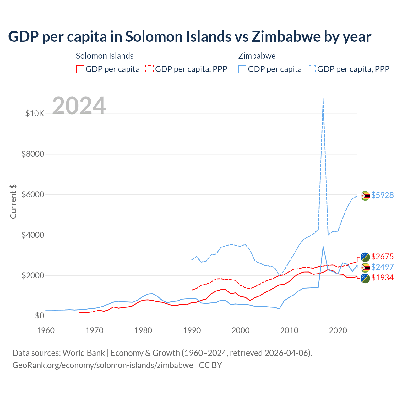 Solomon Islands vs Zimbabwe GDP by year