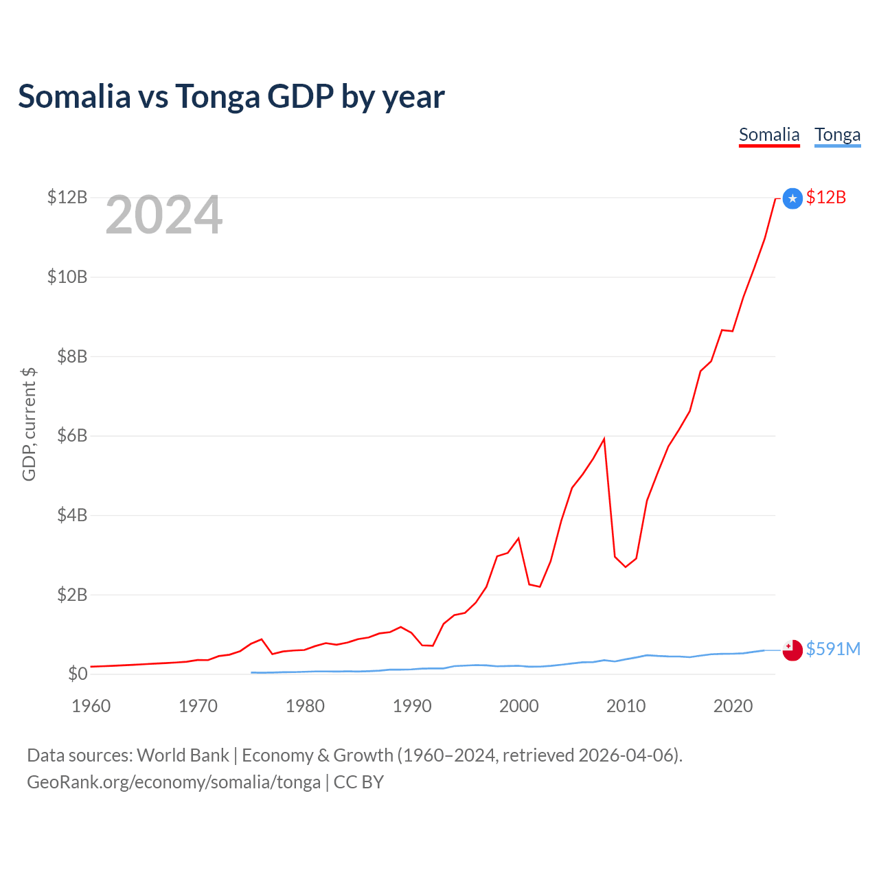 Somalia vs Tonga GDP by year
