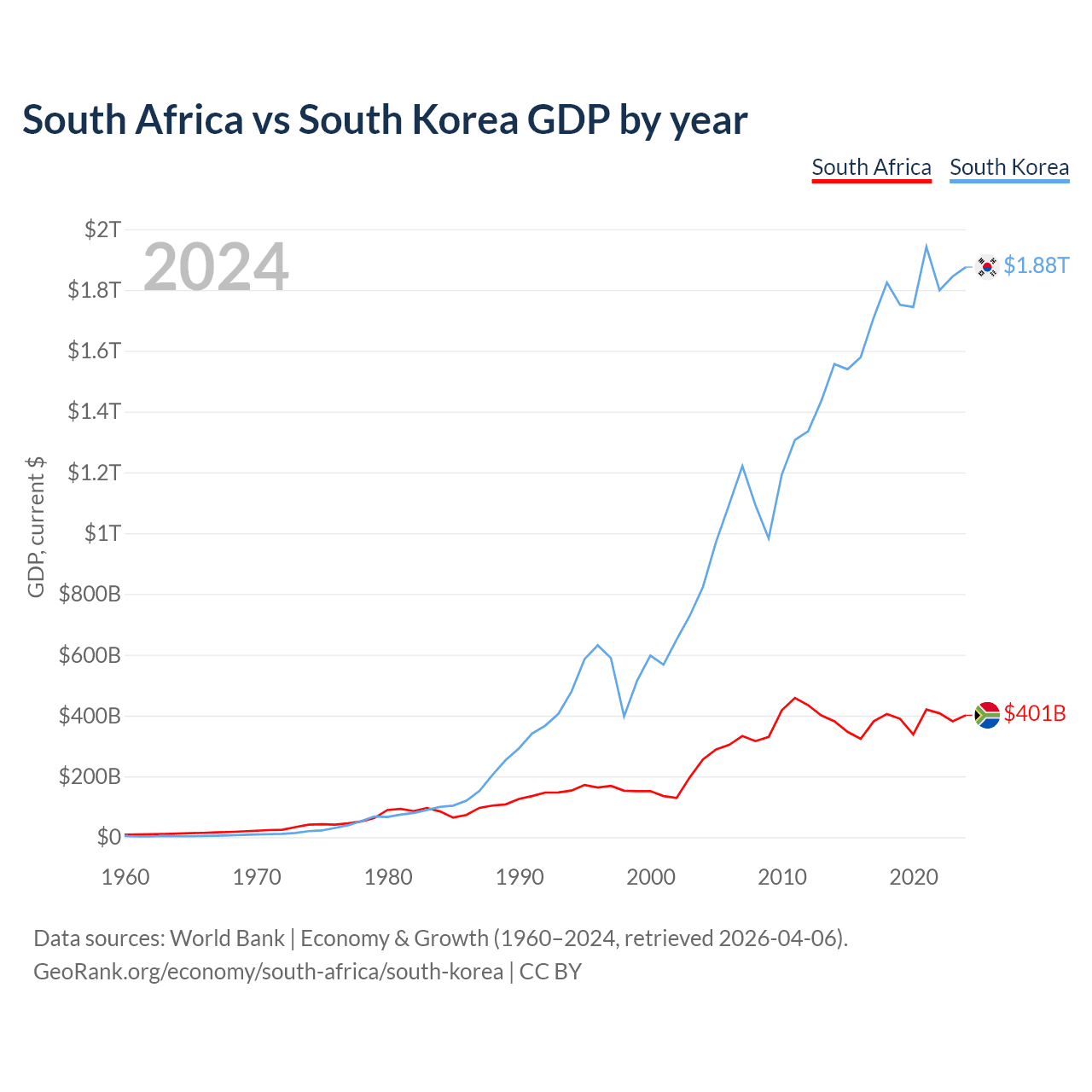 South Africa vs South Korea GDP by year