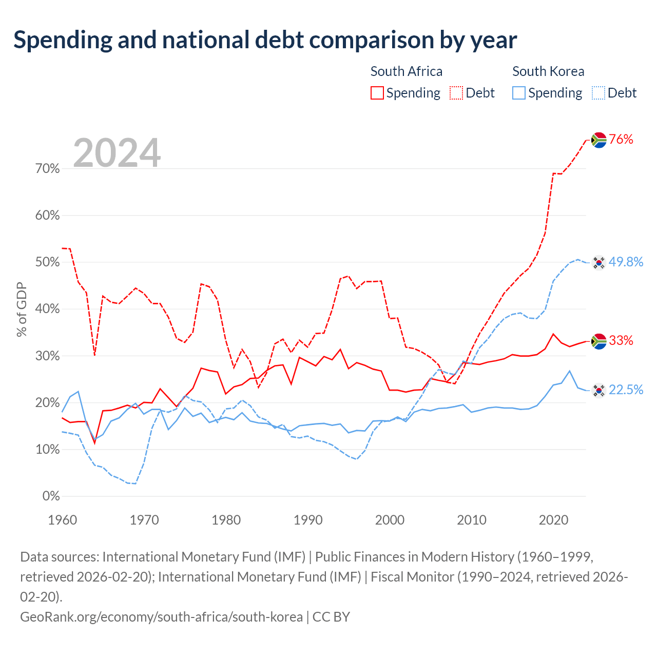 South Africa has $305B in government debt (76% of GDP), compared to $934B (49.8% of GDP) in South Korea.