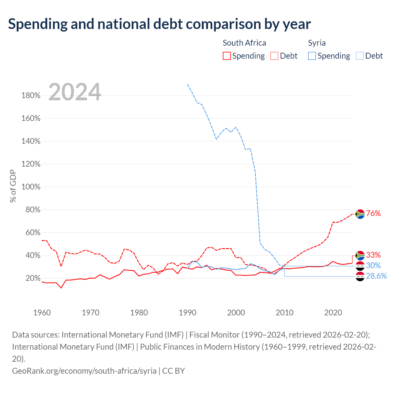 South Africa has $305B in government debt (76% of GDP), compared to $18.4B (30% of GDP) in Syria.