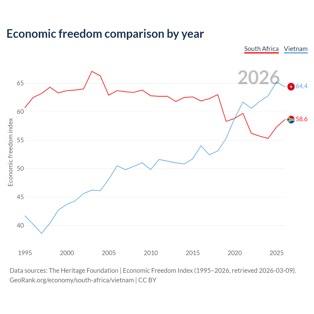 Data sources: The Heritage Foundation | Economic Freedom Index (1995–2026, retrieved 2026-03-09).