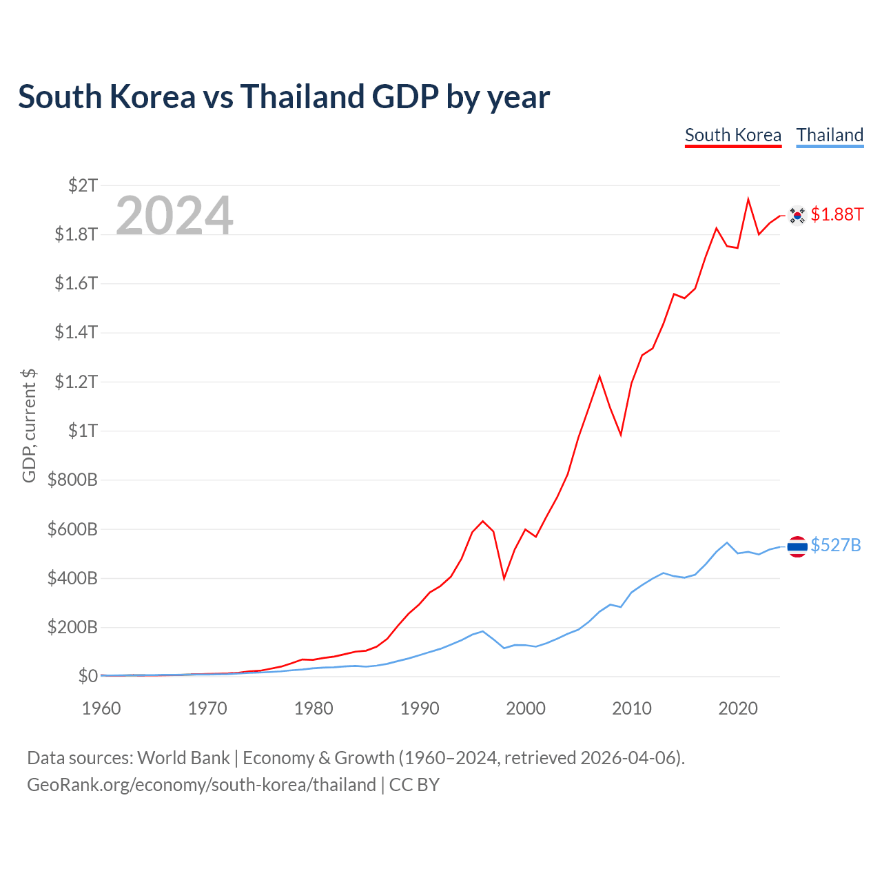 South Korea vs Thailand GDP by year