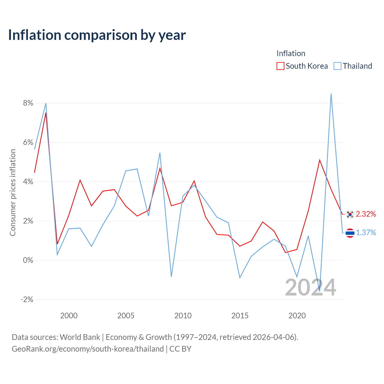 Data sources: World Bank | Economy & Growth (1960–2024, retrieved 2026-04-06).