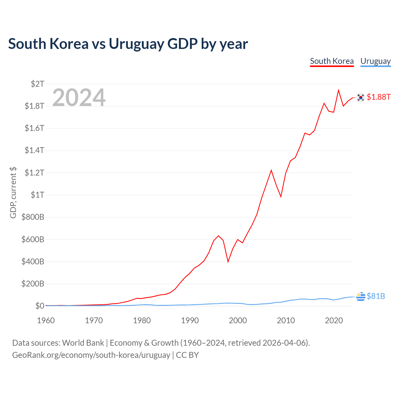 South Korea vs Uruguay GDP by year