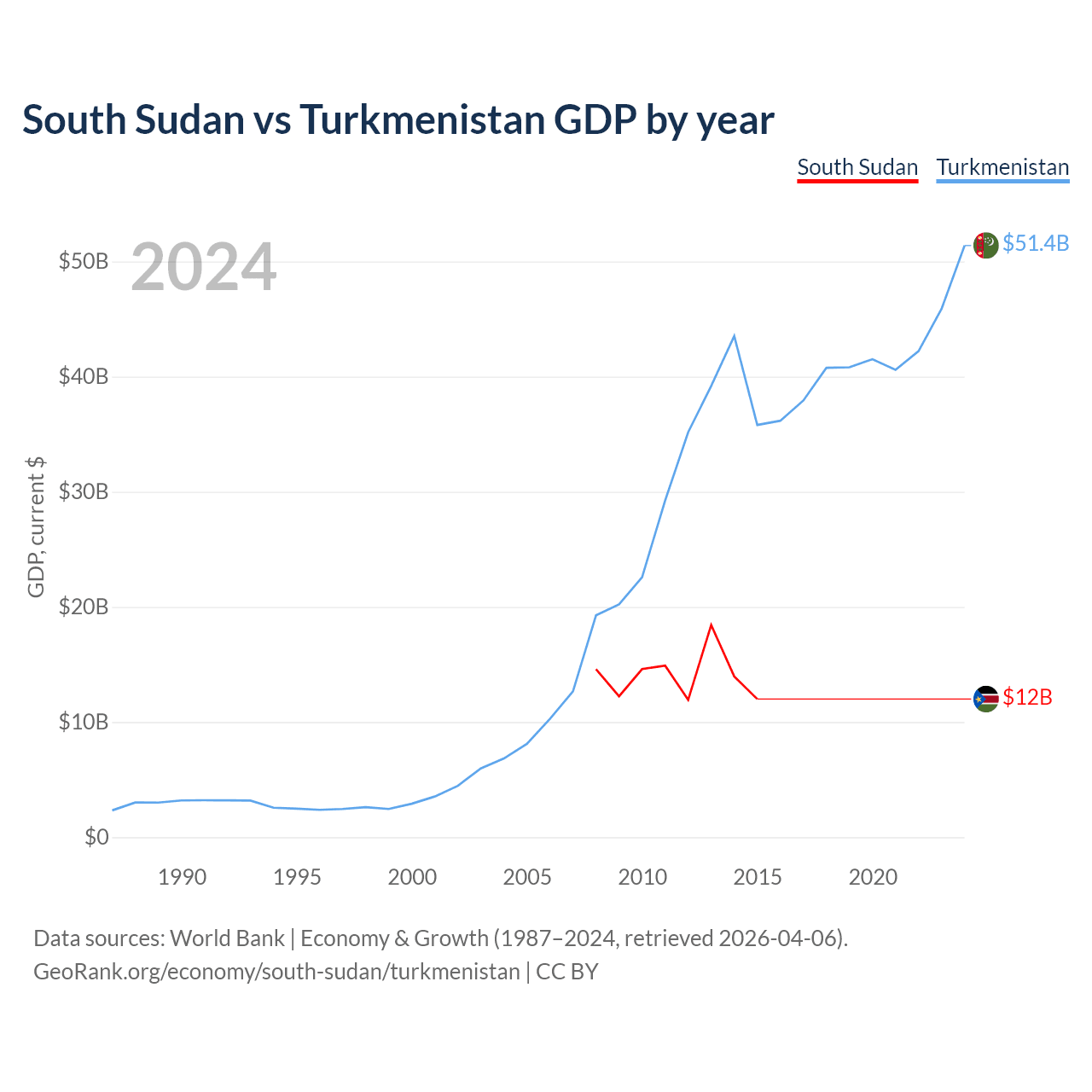 South Sudan vs Turkmenistan GDP by year