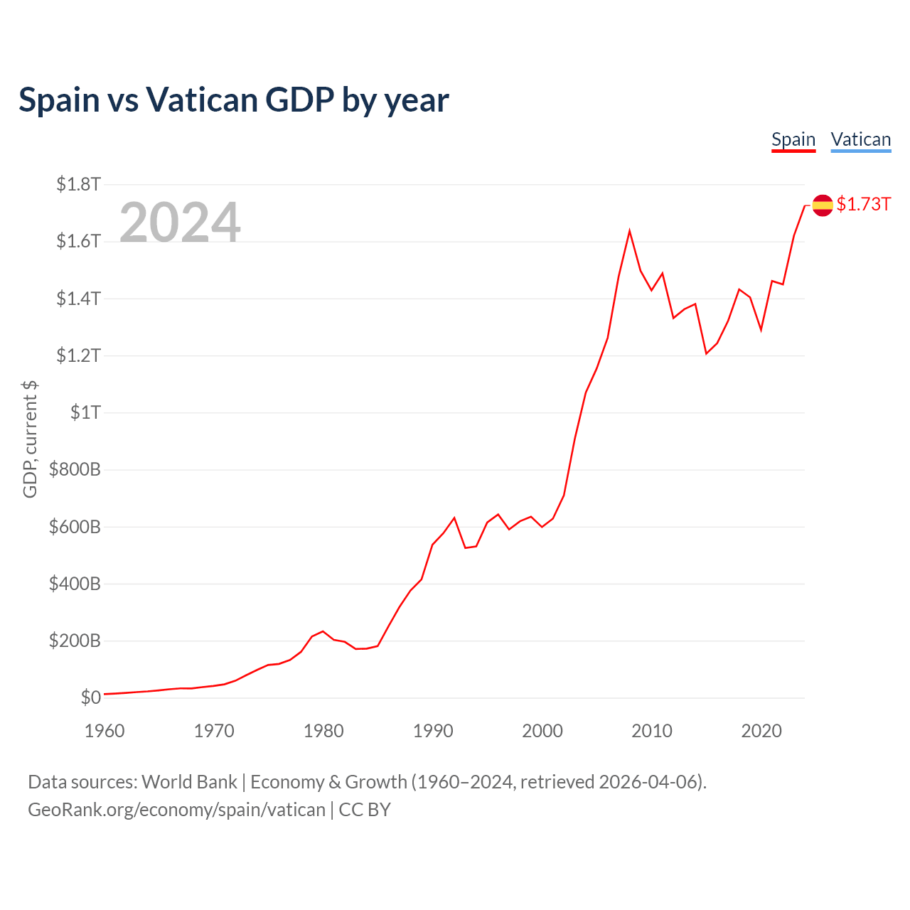 Spain vs Vatican GDP by year