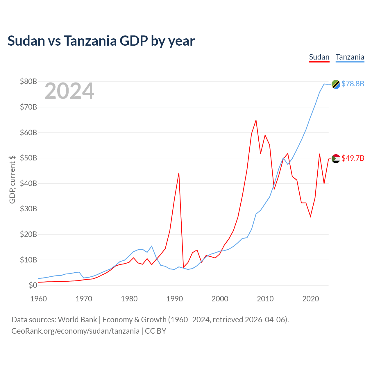 Sudan vs Tanzania GDP by year