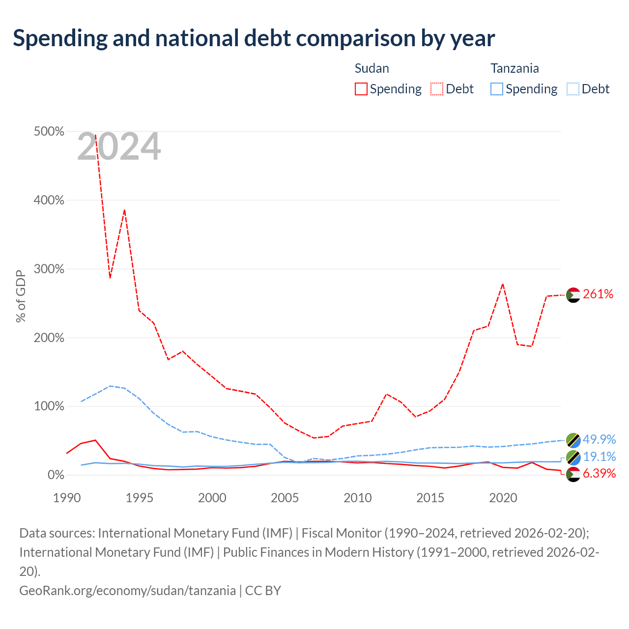 Sudan has $130B in government debt (261.4% of GDP), compared to $39.3B (49.9% of GDP) in Tanzania.