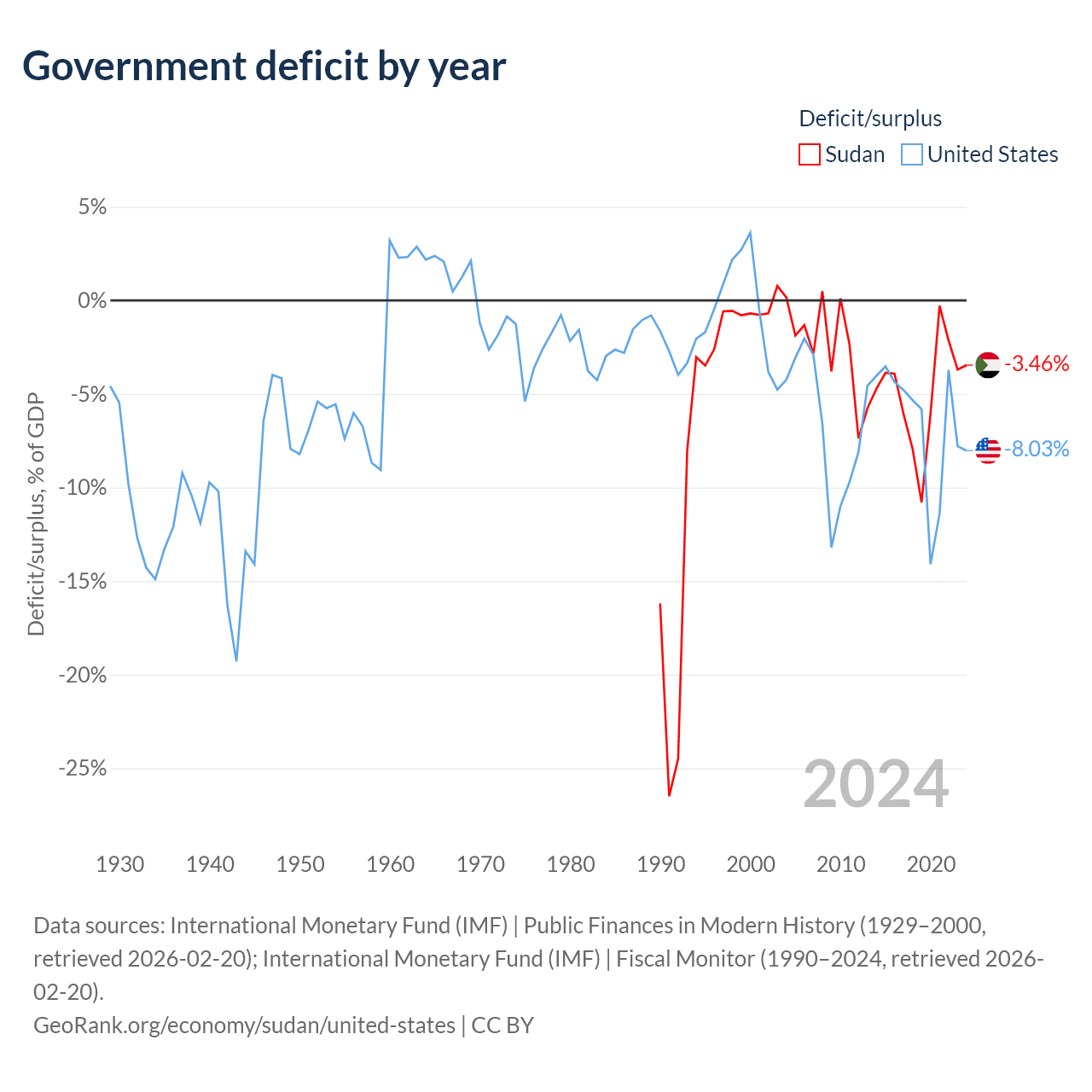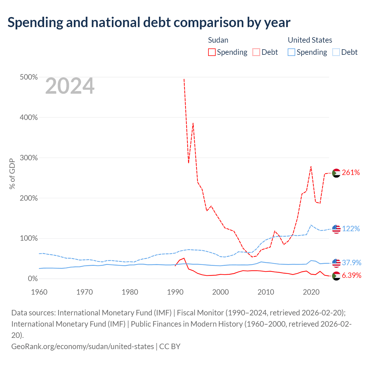 Sudan has $130B in government debt (261.4% of GDP), compared to $35.2T (122.3% of GDP) in the United States.