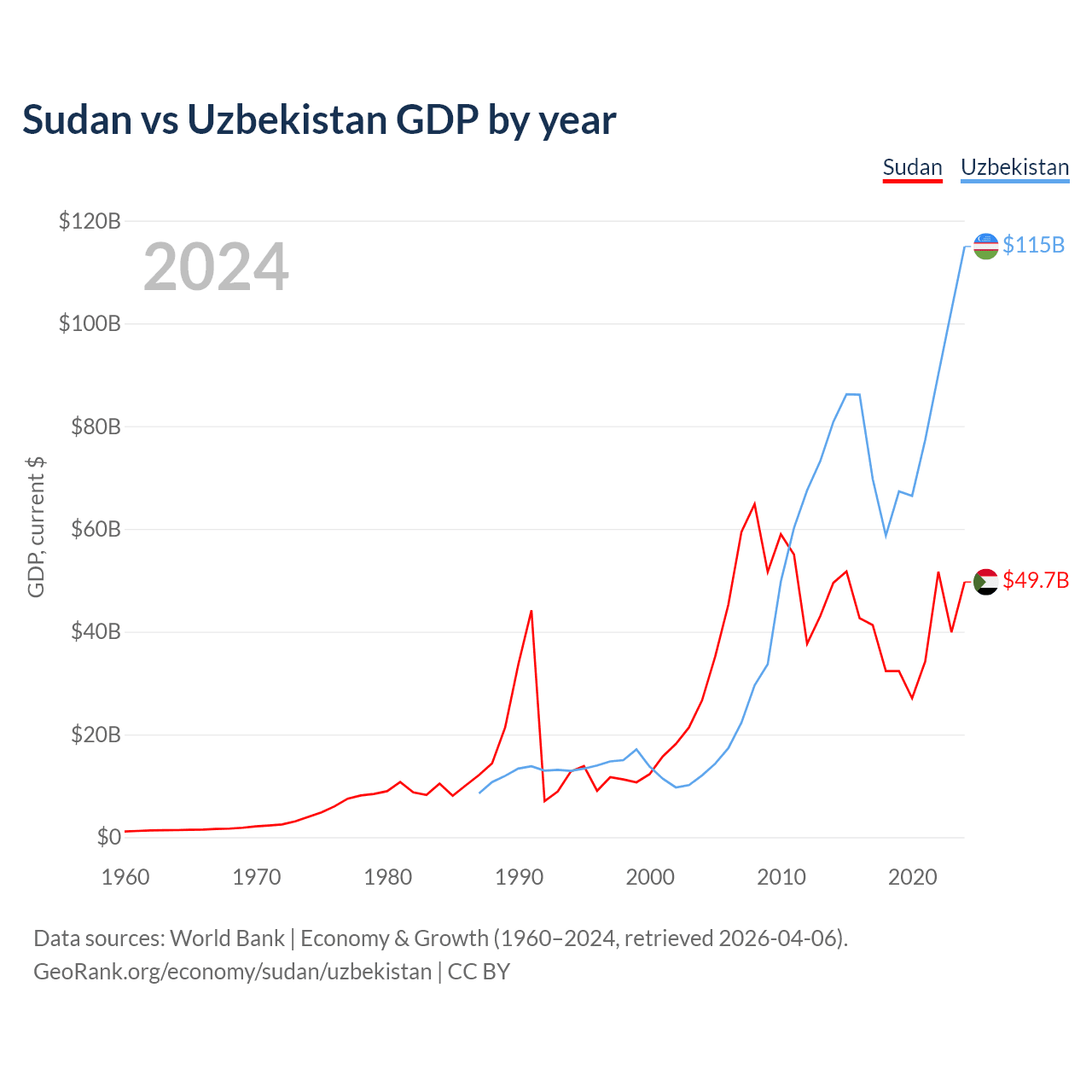 Sudan vs Uzbekistan GDP by year