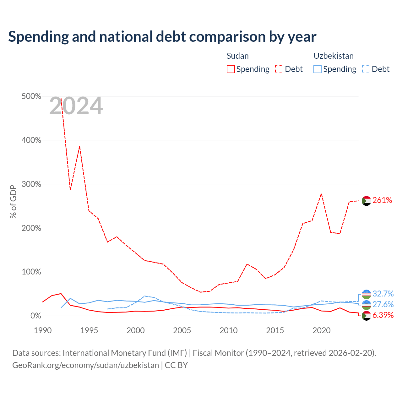 Sudan has $130B in government debt (261.4% of GDP), compared to $37.5B (32.7% of GDP) in Uzbekistan.