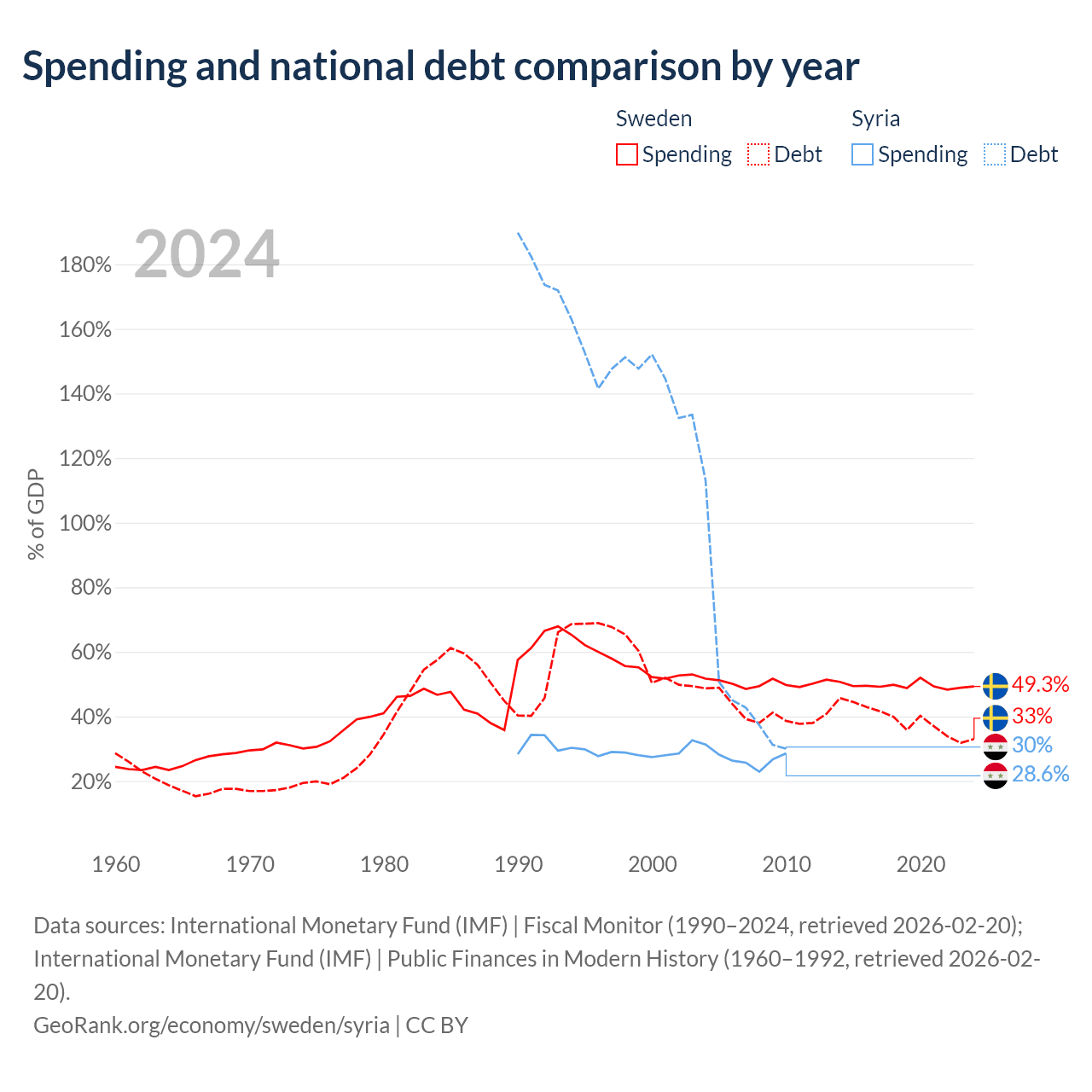 Sweden has $199B in government debt (33% of GDP), compared to $18.4B (30% of GDP) in Syria.