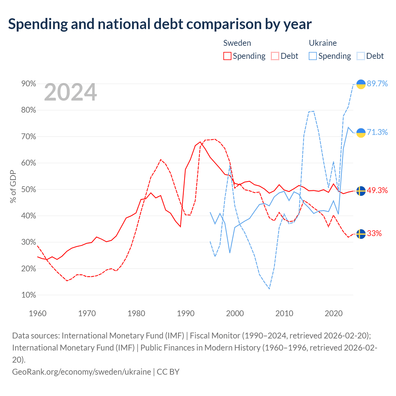 Sweden has $199B in government debt (33% of GDP), compared to $171B (89.7% of GDP) in Ukraine.