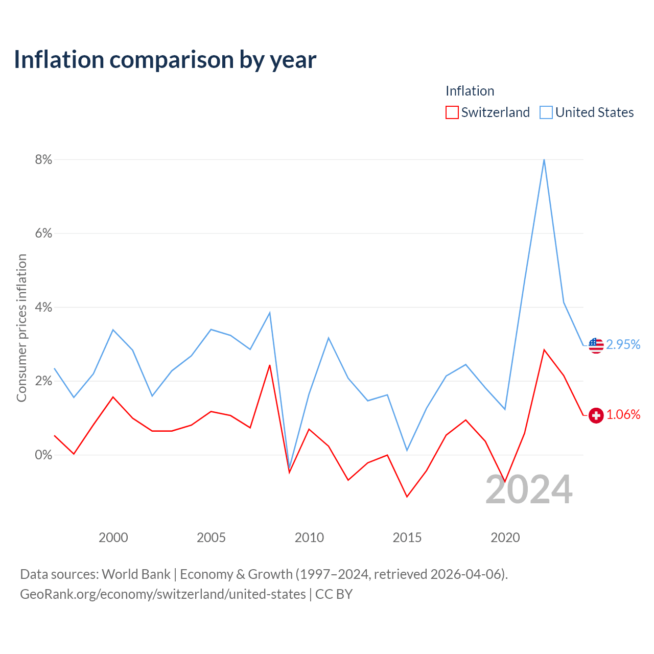 Data sources: World Bank | Economy & Growth (1960–2024, retrieved 2026-04-06).