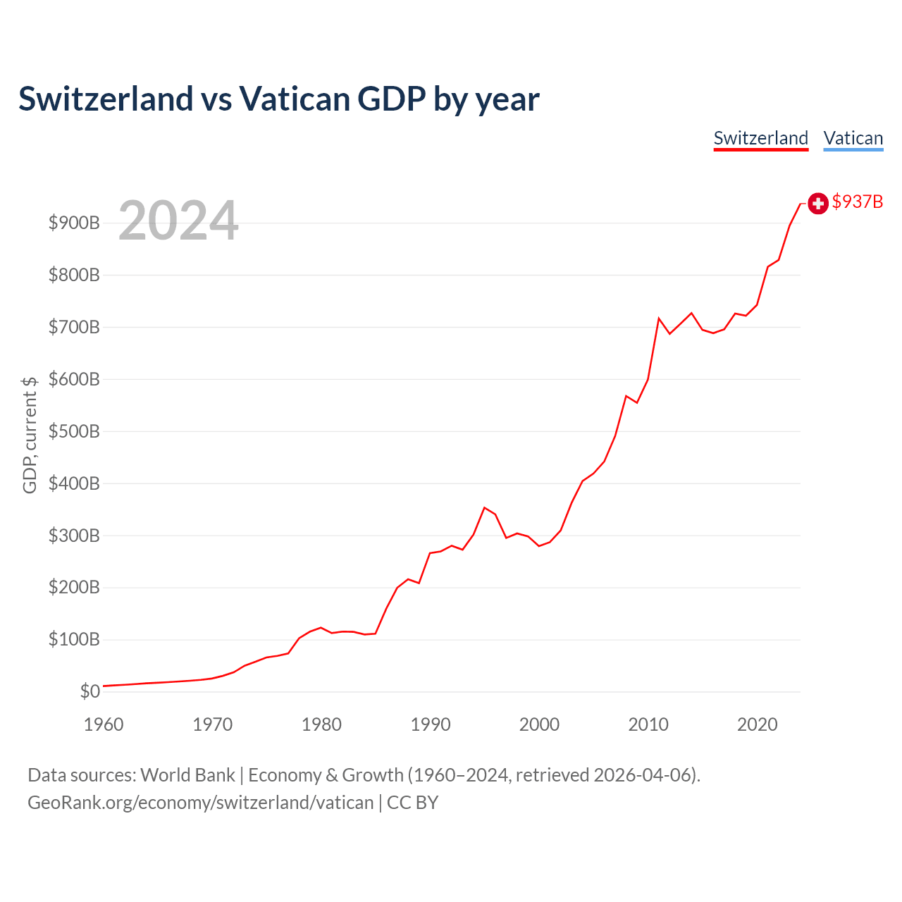 Switzerland vs Vatican GDP by year