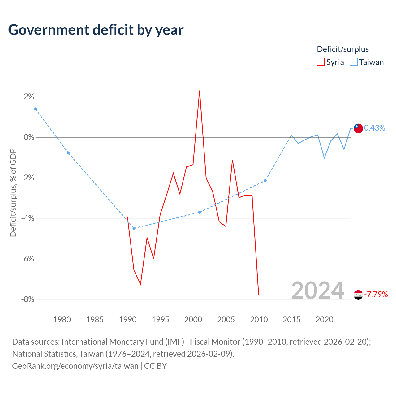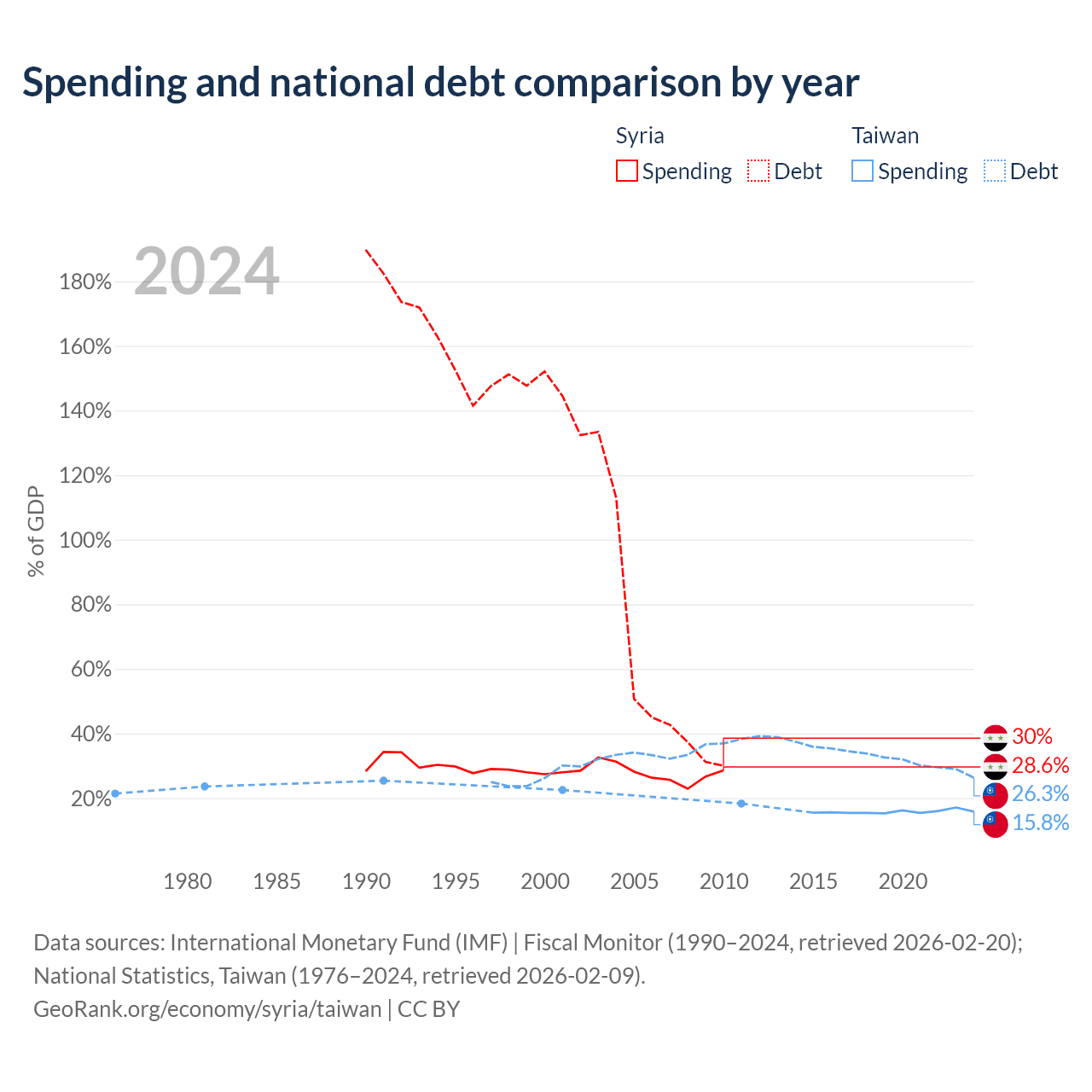 Syria has $18.4B in government debt (30% of GDP), compared to $211B (26.3% of GDP) in Taiwan.