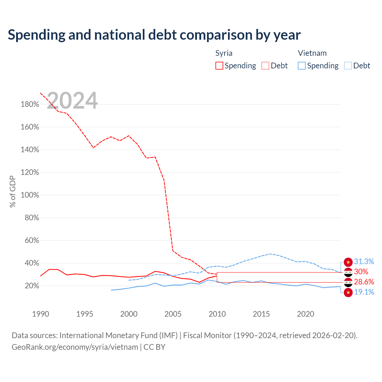 Syria has $18.4B in government debt (30% of GDP), compared to $149B (31.3% of GDP) in Vietnam.