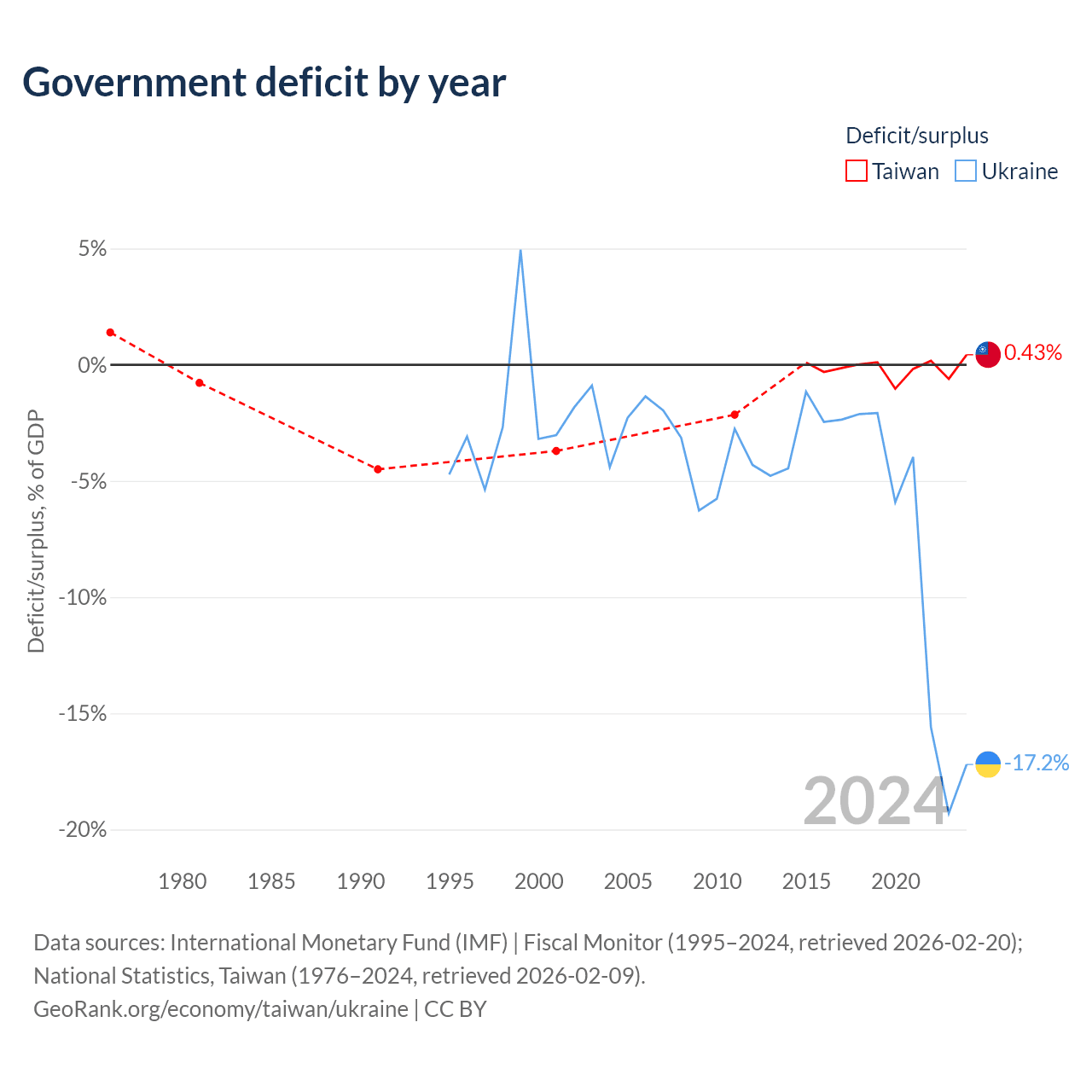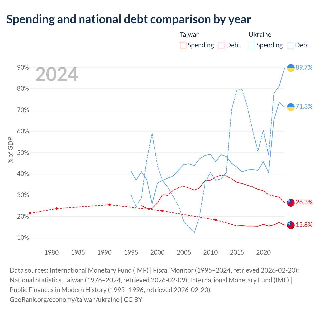 Taiwan has $211B in government debt (26.3% of GDP), compared to $171B (89.7% of GDP) in Ukraine.