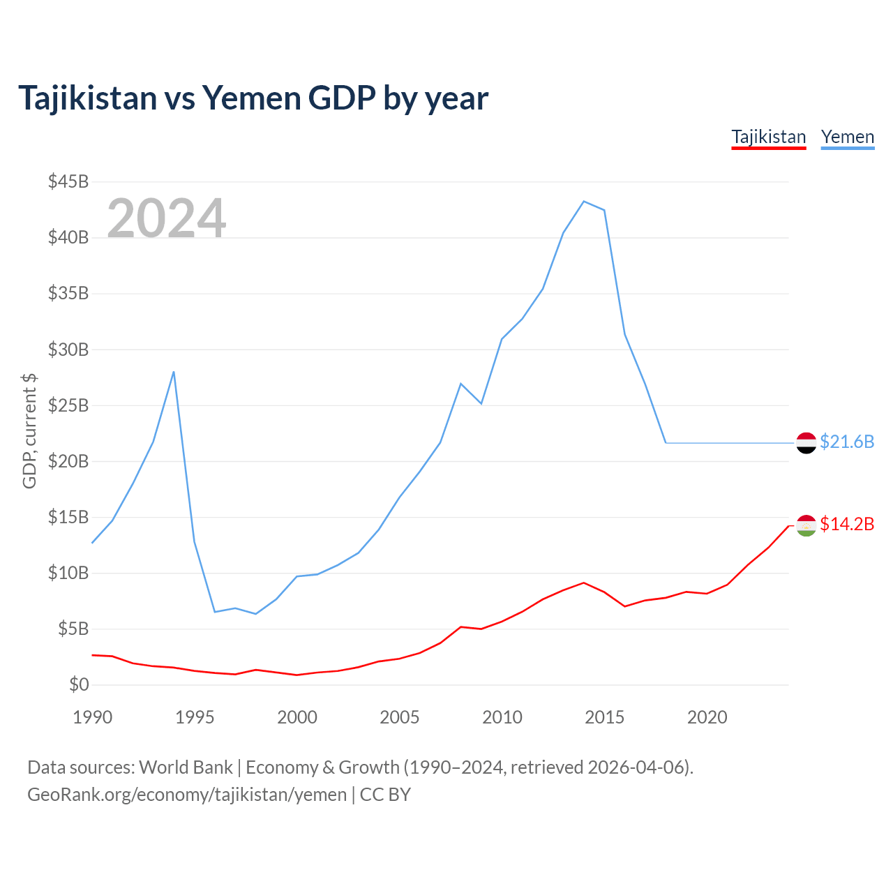 Tajikistan vs Yemen GDP by year