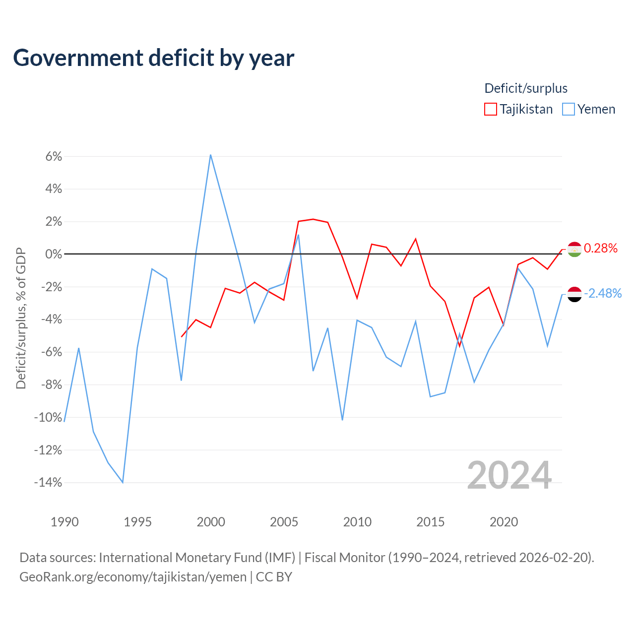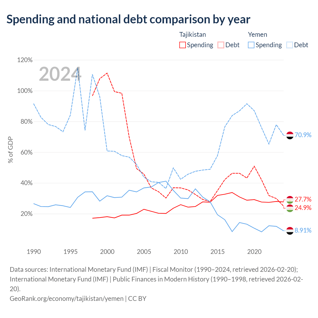 - International Monetary Fund (IMF) | Fiscal Monitor (1990–2024, retrieved 2026-02-20)