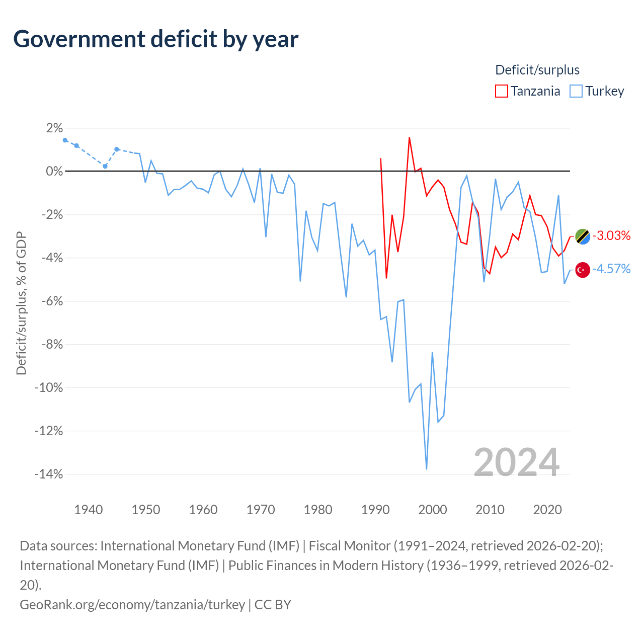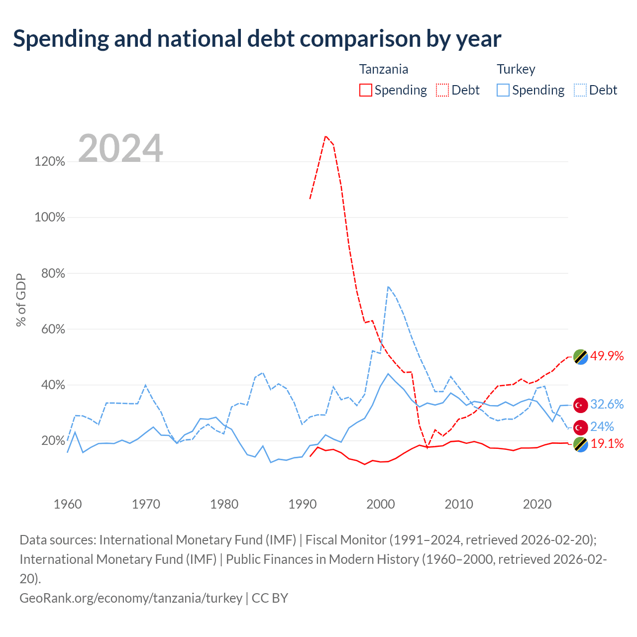 Tanzania has $39.3B in government debt (49.9% of GDP), compared to $327B (24% of GDP) in Turkey.