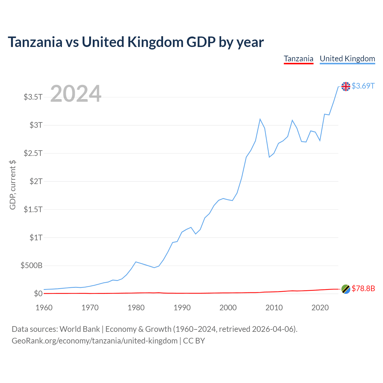 Tanzania vs United Kingdom GDP by year