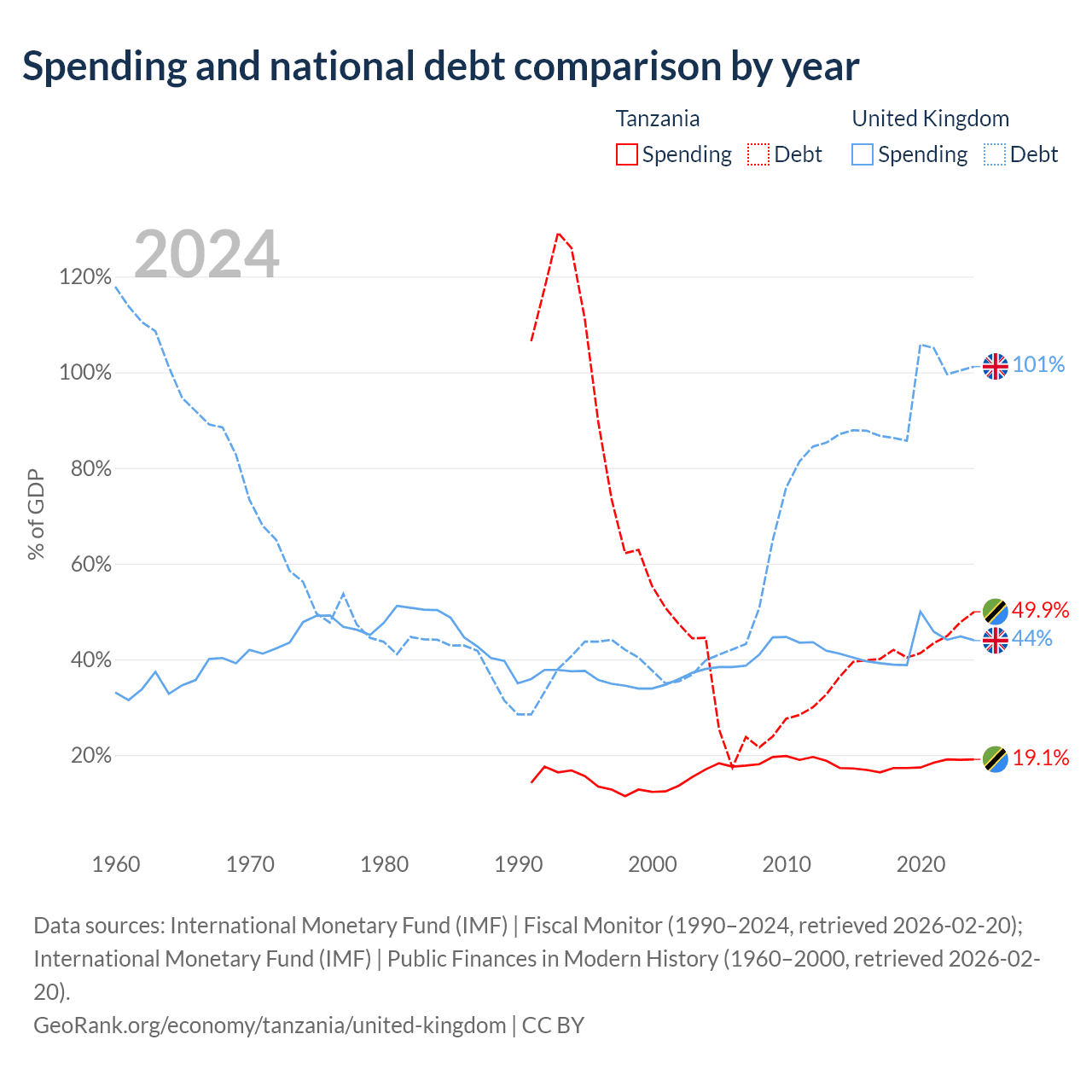Tanzania has $39.3B in government debt (49.9% of GDP), compared to $3.73T (101.2% of GDP) in the United Kingdom.